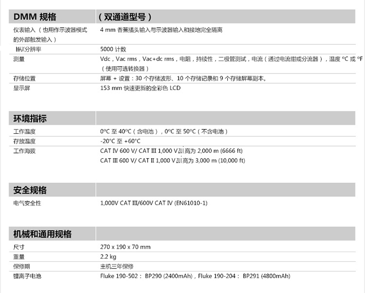 FLUKE-190-204/AU 37049.00 5 2周